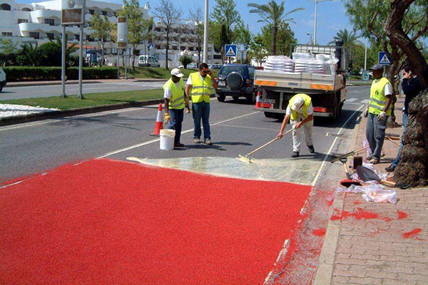 傳統路面不美觀,顏色單一,易起塵,防滑性能差,在有些場景中,是不符合我們現在生態環境建設要求的。